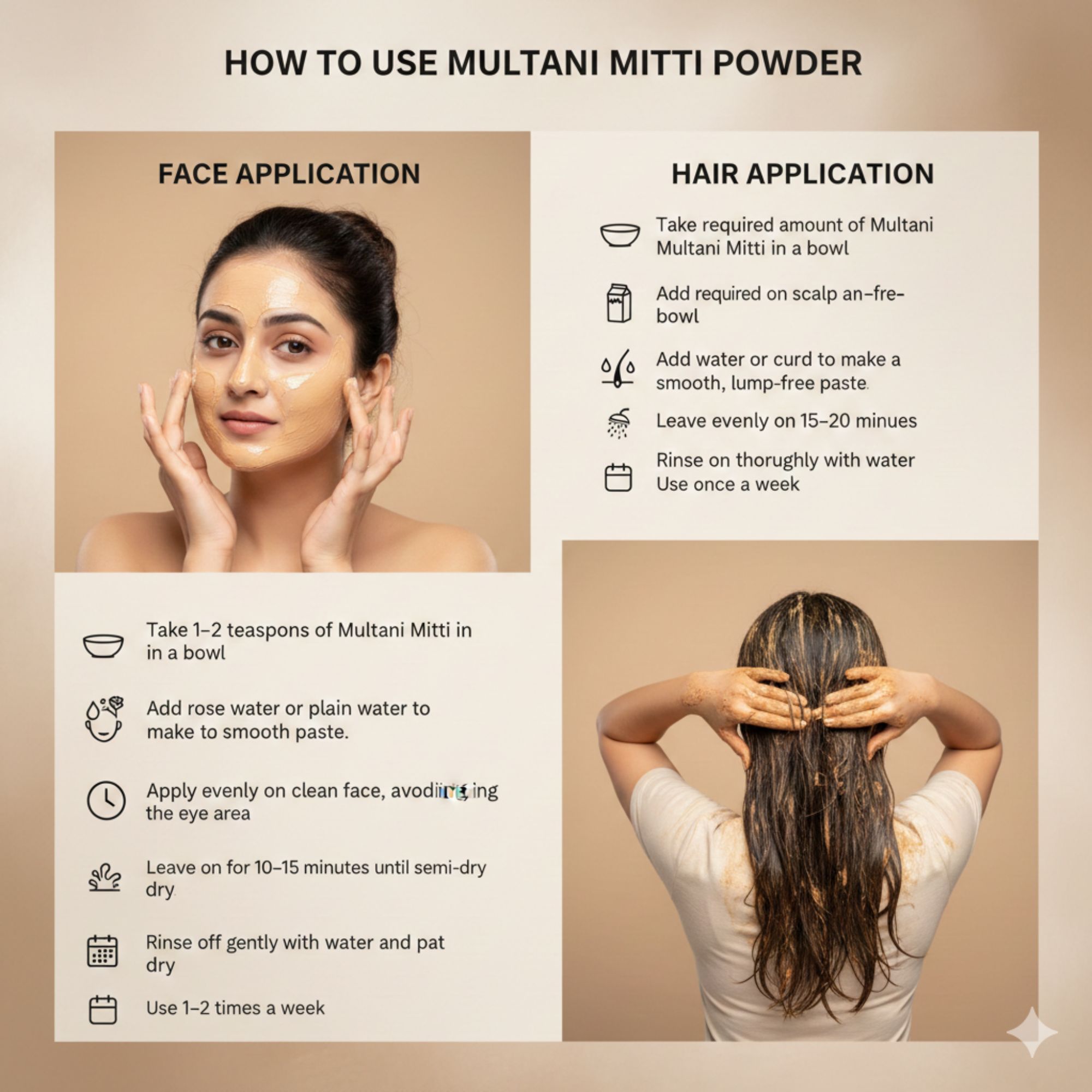 π₯£ Combine Multani Mitti with water, curd, or your favorite herbal oil to create a thick paste.